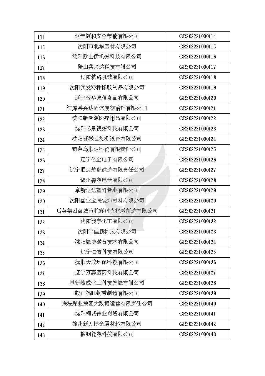 根据《高新技术企业认定管理办法》(国科发火〔2016〕32号)和《高新技术企业认定管理工作指引》(国科发火〔2016〕195号)有关规定,现对辽宁省认定机构2022年认定的第一批523家高新技术企业备案名单(详见附件)予以公告。