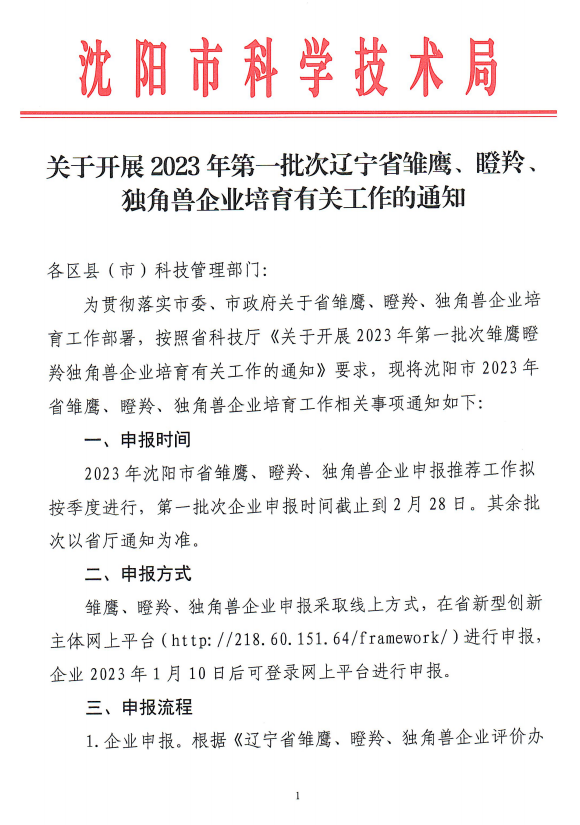 关于组织开展2023年沈阳市高新技术企业申报推荐工作的通知